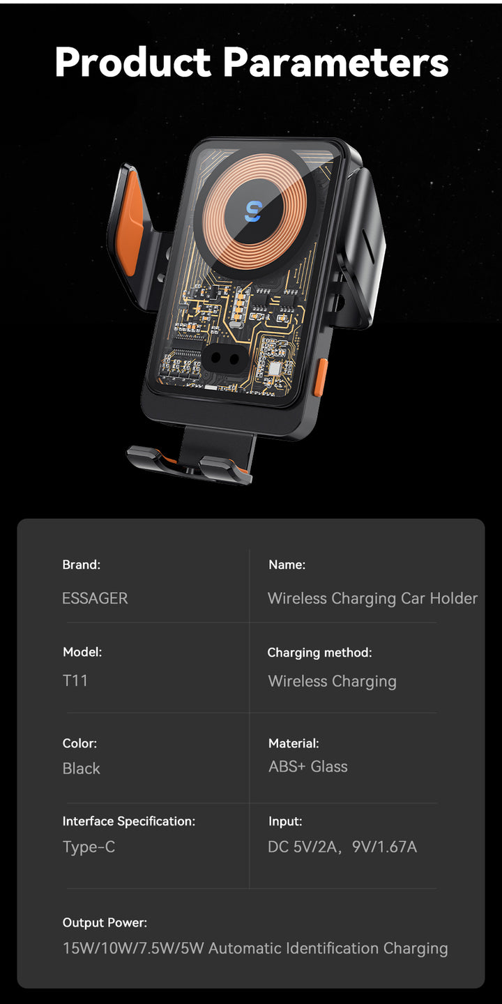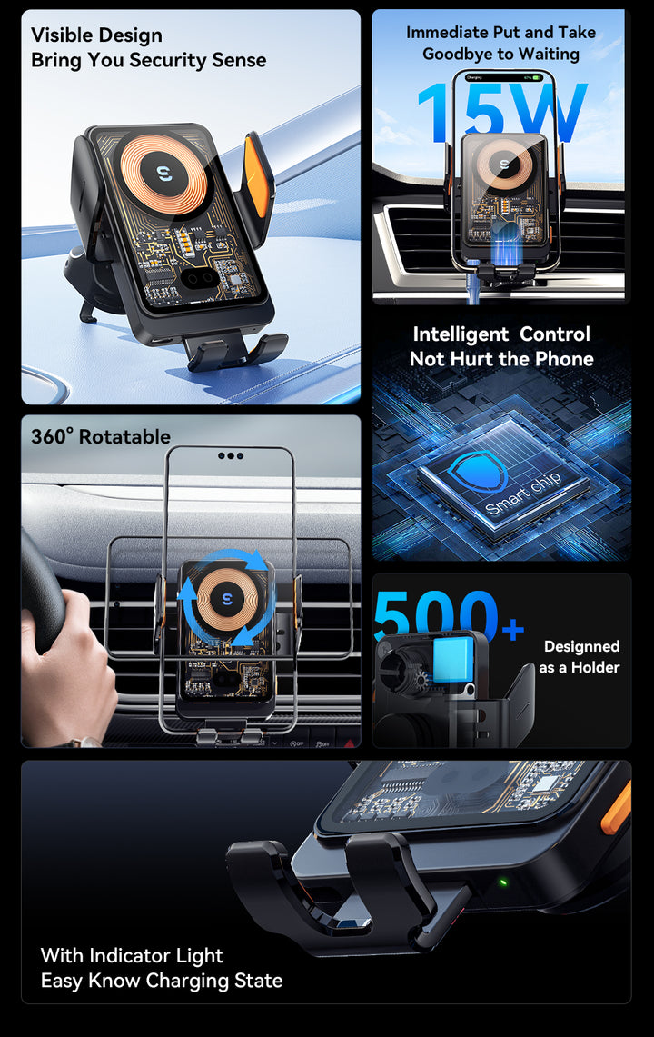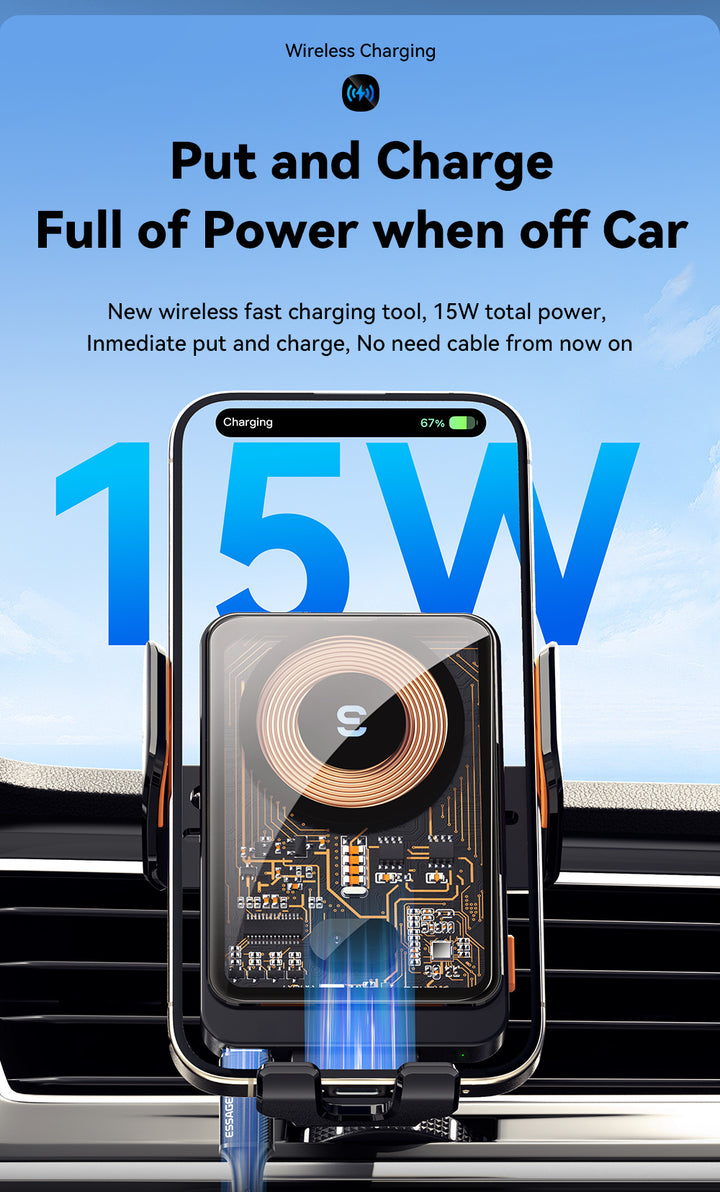 شاحن لاسلكي 15W Qi للسيارة فتحة تهوية هوائية حامل مثبت لهاتف iPhone-Mount يدعم الشحن السريع