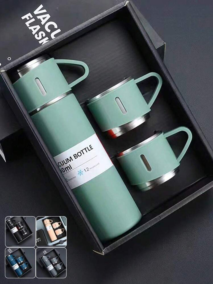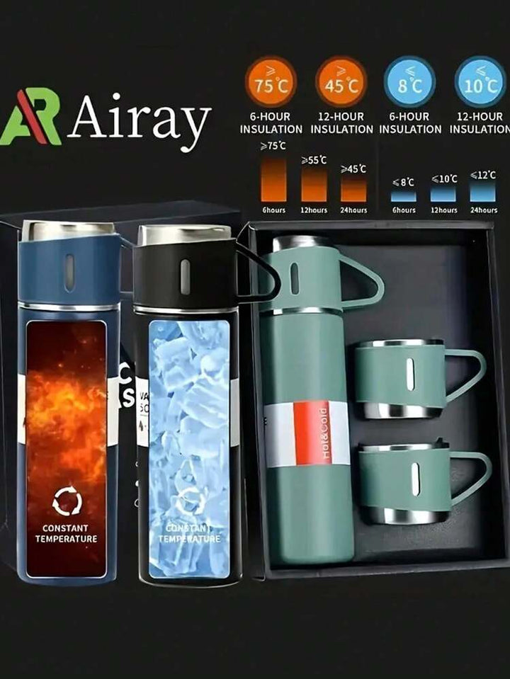 طقم إبريق رئيسي 500مل وإبريقين صغيرين مطابقين، مصنوع من الفولاذ المقاوم للصدأ ومعزول للحرارة، محكم الإغلاق، مناسب للمشروبات الساخنة والباردة، مثالي للسفر والأعمال والمدرسة، يمكن استخدامه كزجاجة مياه، معدات الهواء الطلق، زجاجة رياضية، لوازم مدرسية، للياقة